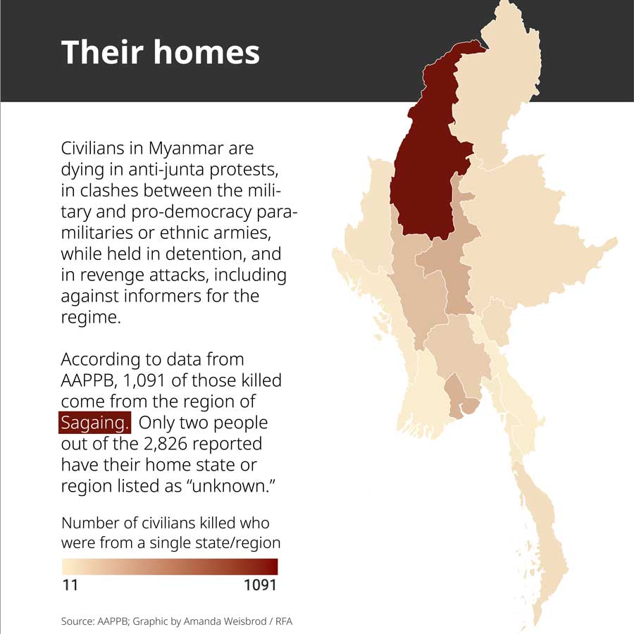 “The people in this region are now fighting the regime with a persistence and courage never seen before,” Tint Swe, a former lawmaker for Sagaing’s Pale township, told RFA earlier this year.