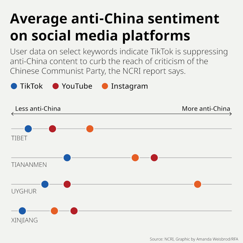 A report issued earlier this year by the Network Contagion Research Institute, or NCRI, at Rutgers University in New Jersey found that TikTok algorithms promote the Chinese government’s narratives on hot-button issues such as Tibet, Taiwan and the Uyghurs, while suppressing content critical of Beijing.